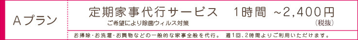 - 一般的な家事全般のほか、時間内のお買い物やお支払い、クリーニングなどのお手続き代行をいたします。